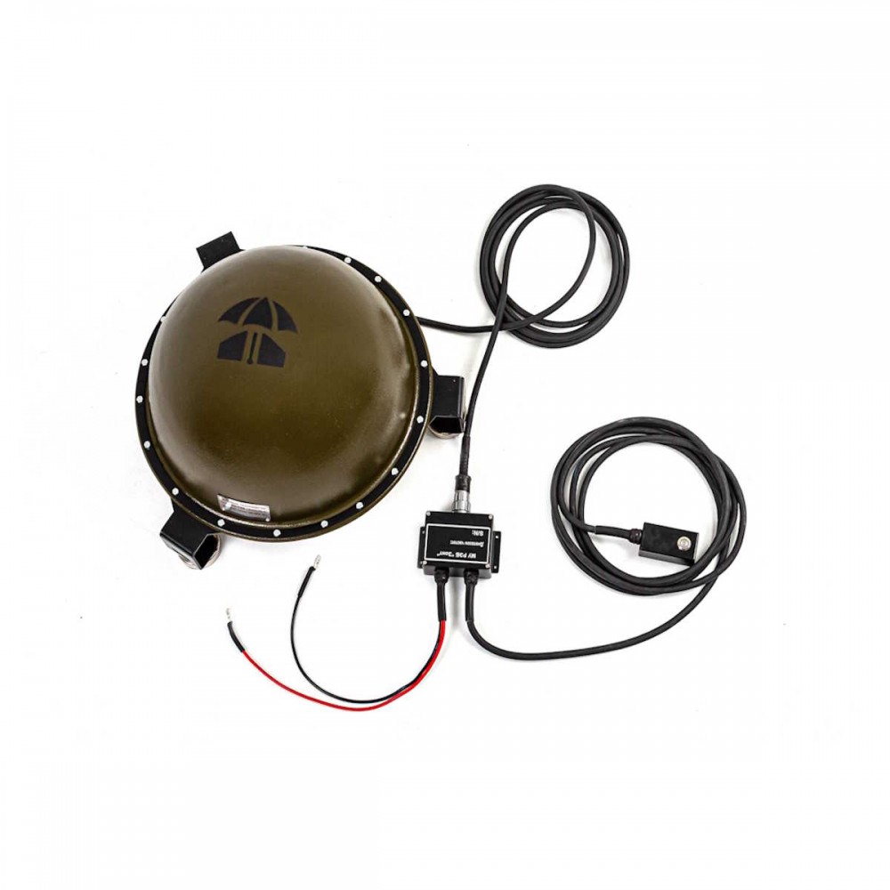 - Быстрый монтаж — крепление на крышу или площадку техники с помощью магнитных опор/кронштейна, пульт в кабину.