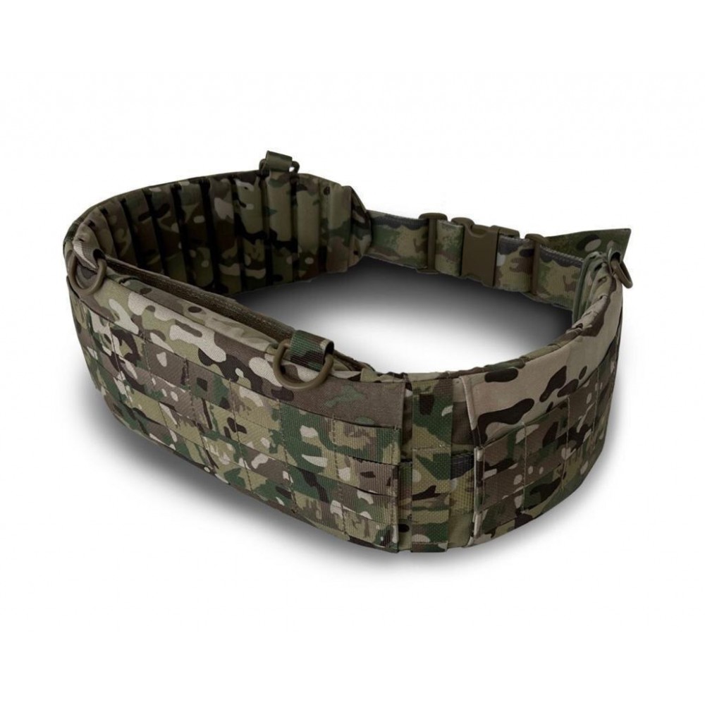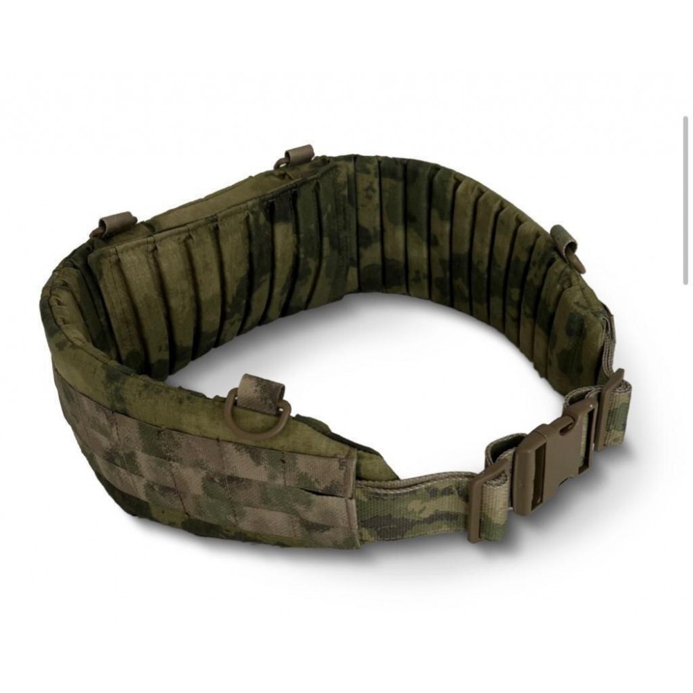 Пояс имеет размер 100 см с шириной 15 см в середине. Изготовлен из прочной ткани кордон прайм из 100% полиамида (нейлона), а также оснащен системой строп молле и фурнитурой из морозостойкого ацетала. Полная разборность пояса обеспечивает удобство в уходе за ним и его долговечность.